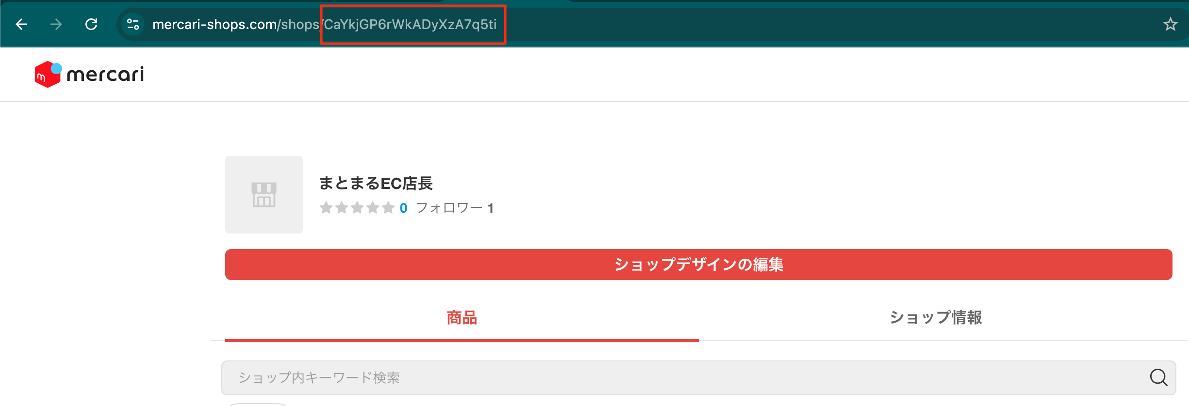 ショップURLのhttps://mercari-shops.com/shops/に続く乱数をご入力ください。